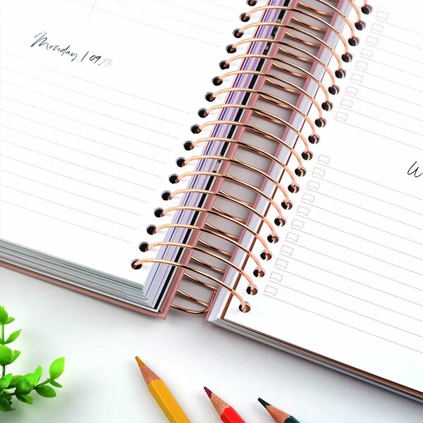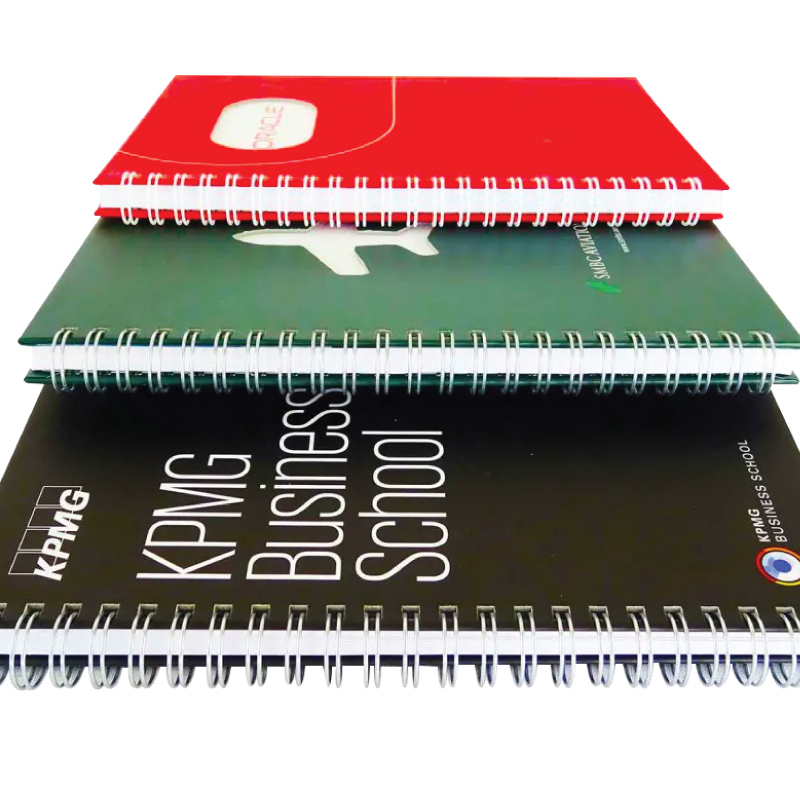 Spiral Türleri: Metal veya plastik spiral - Yan veya üstten spiralli üretim - Renkli spiral seçenekleriyle marka kimliğine uyumludur.